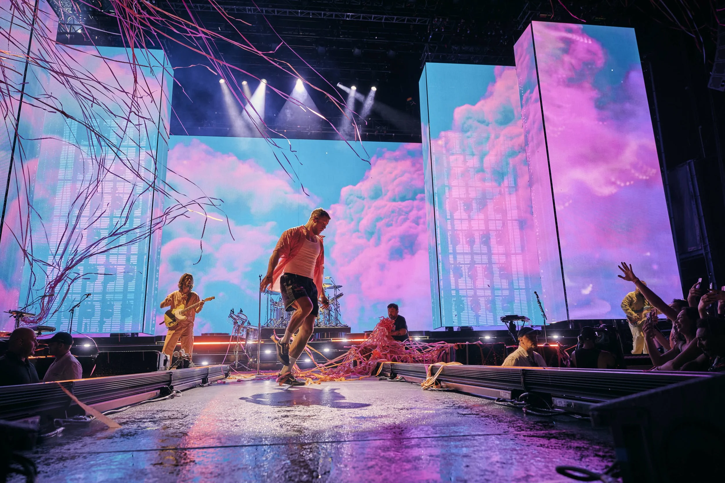 “The band’s stage setup was visually stunning, featuring four towering screens that displayed striking visuals throughout the concert. The combination of dazzling imagery, energetic lighting effects, and bursts of confetti and pyrotechnics transformed the performance into a true production spectacle.”